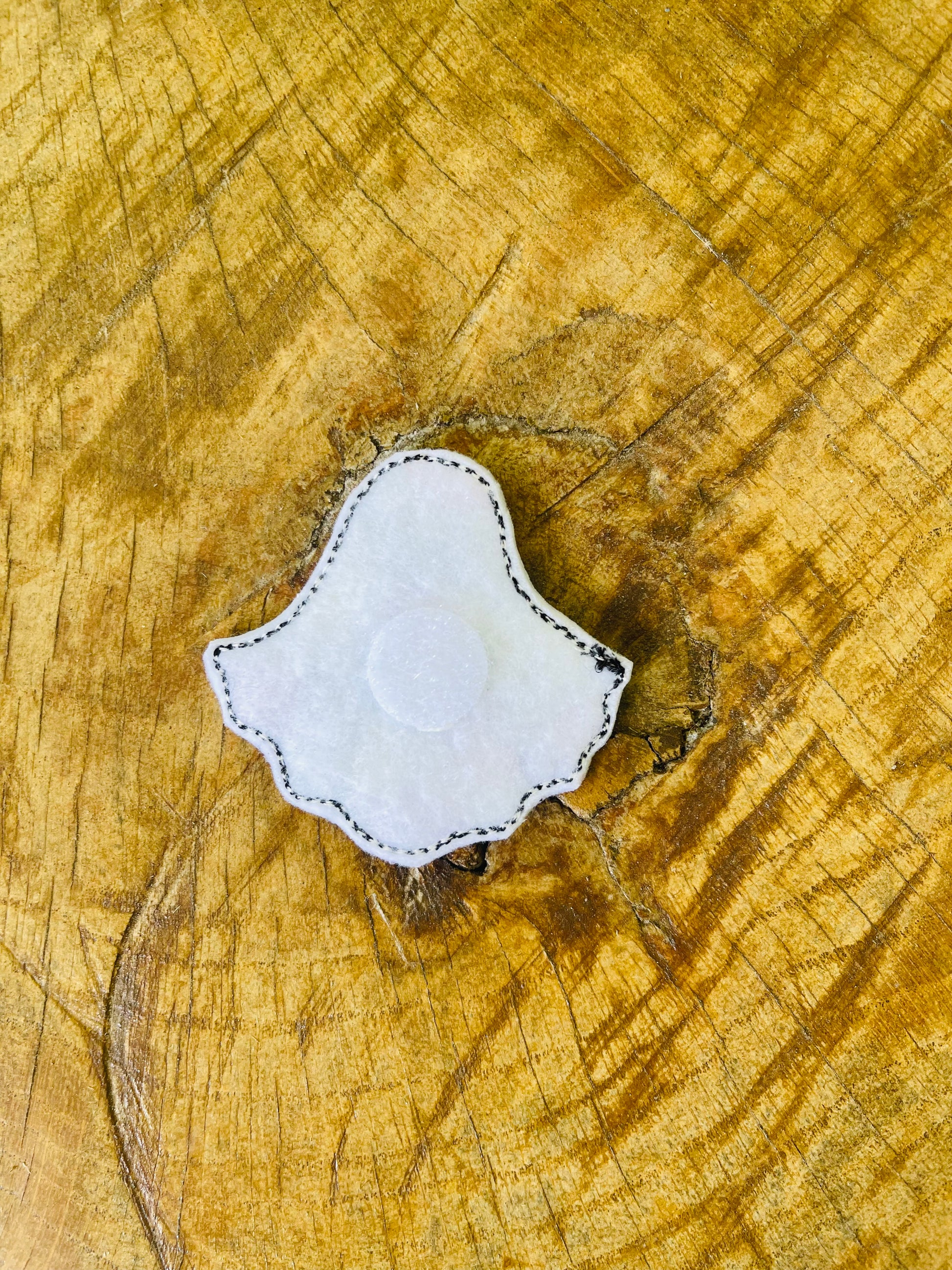 Embroidered Flower Ghost Badge Reel with interchangeable topper.